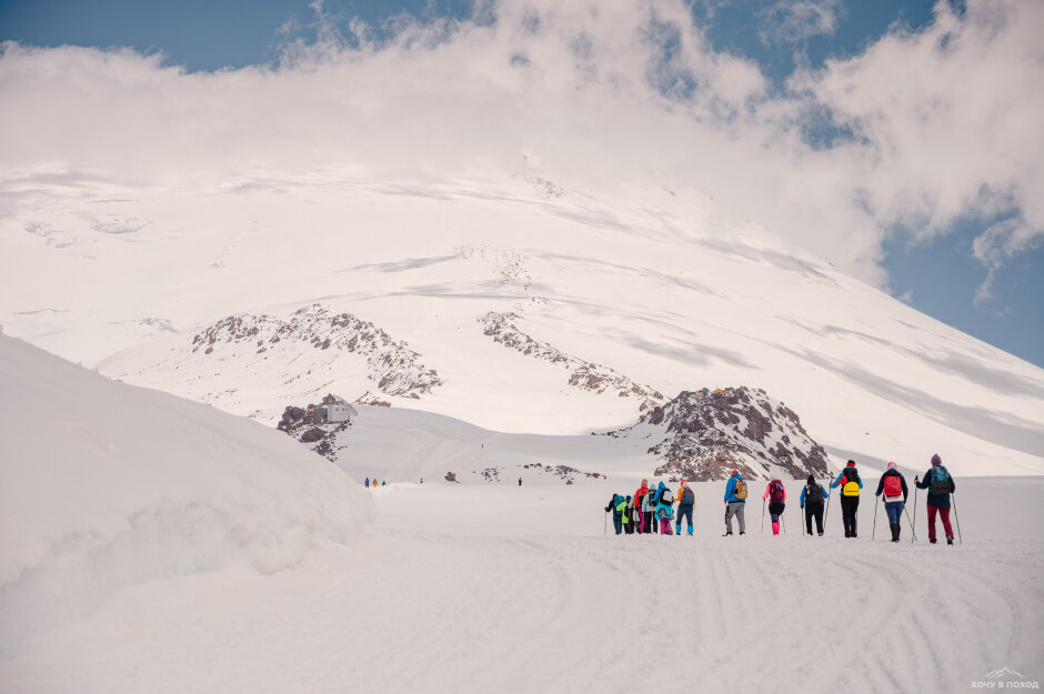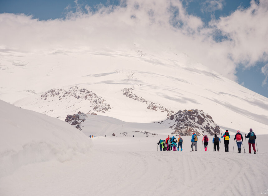 Сегодня поднимемся по самой высокогорной канатной трассе Европы к до станции Гарабаши 3847 м. Дальше пойдем пешком выше до высоты 4200 м над у.м. Здесь расположен отель «Приют 11», который до 1998 года в течение 60 лет был самым высокогорным в СССР и РФ. Нам предстоит пеший переход по снегу на большой высоте. Идем сюда специально на 6 день тура, чтобы организм был готов к такой высоте и нагрузкам, вы можете почувствовать первые признаки воздействия высоты на организм. Но благодаря трекингам предыдущих дней акклиматизация обычно проходит максимально комфортно и сил больше.