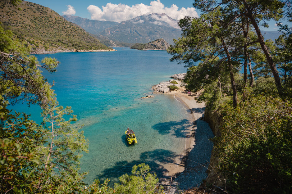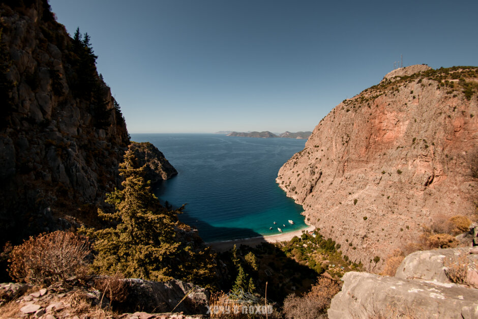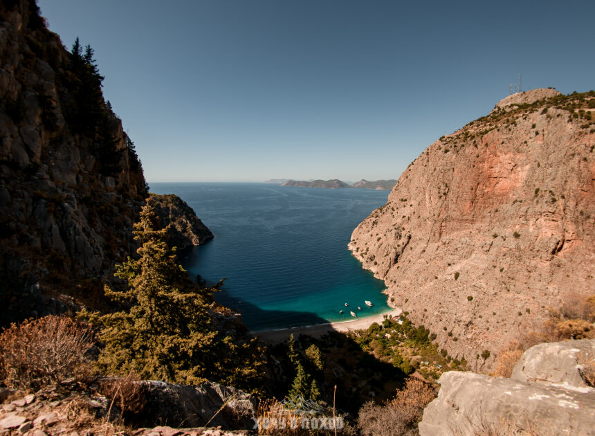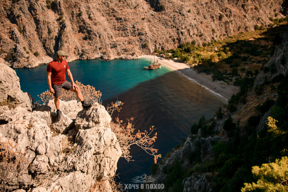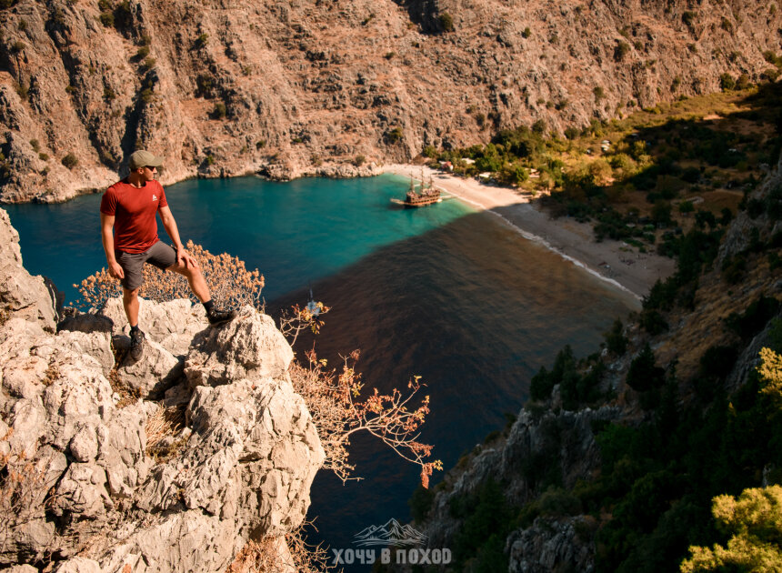 Утром турецкий завтрак. Это чаще всего бывает набор закусок из сыров, оливок, свежих овощей, яйца вареные или омлет, хлеб, масло, мед. Потом выезжаем к старту тропу в деревню Кабак (1 час 20 минут в дороге). Это милая деревушка возле моря, менее туристическая, чем район Фетхие-Олюдениза. От Кабака пройдем по Ликийской тропе до смотровой на одно из самых притягательных для туристов мест - бухту Бабочек. Сама бухта находится глубоко в каньоне и легко доступна только с моря. Почему “бабочек”? Название появилось около 30 лет назад, когда биологи обнаружили здесь огромное разнообразие бабочек в сезон. Но к сожалению, с тех пор бабочек здесь стало не больше, чем где либо, а красивое название осталось. Бухту Бабочек часто сравнивают с Майя Бэй в Таиланде. Если вы бывали, будет возможность сравнить!)