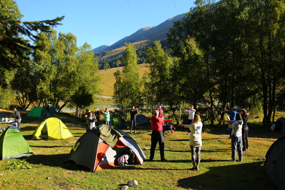 Все ночёвки в палатках в 2х, 3х местных. Места стоянок на полянах возле рек, у организаторов будет с собой кемпинговый теплый душ, газовая печка для приготовления еды. 2 ночи ночи стоим лагерем в районе реки Малая Дукка, следующие ночевки на поляне неподалеку от Софийских водопадов. Связь будет только на 4 день в поселке Архыз, в последующие дни только оператор Мегафон ловит. На маршруте будет возможность покупать у местных хычины (лепешки с мясом или сыром), айран.