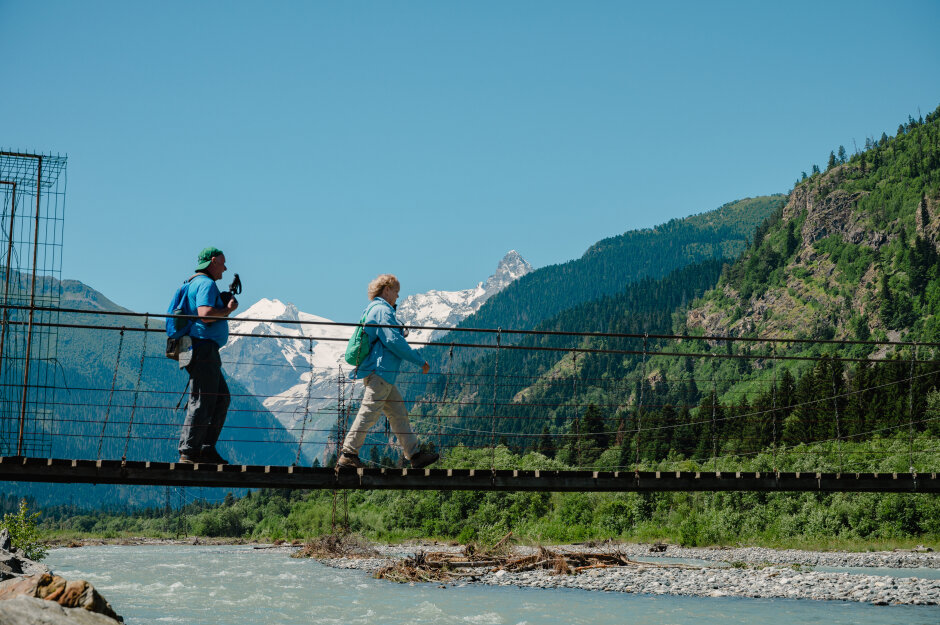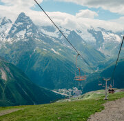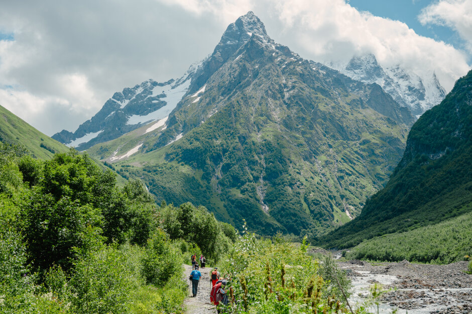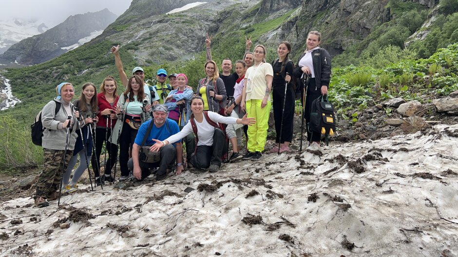 Сегодня от высоты и красоты будет кружится голова. Но больших переходов не будет, возможность отдохнуть после активных трекингов предыдущих дней. На канатной дороге поднимемся с 1600 м на высоту 3200 м над уровнем моря. На верху расположено множество смотровых и кафе с невероятными панорамами. С кругозора хорошо просматривается весь Кавказский хребет, горы Эльбрус и Белалакая.